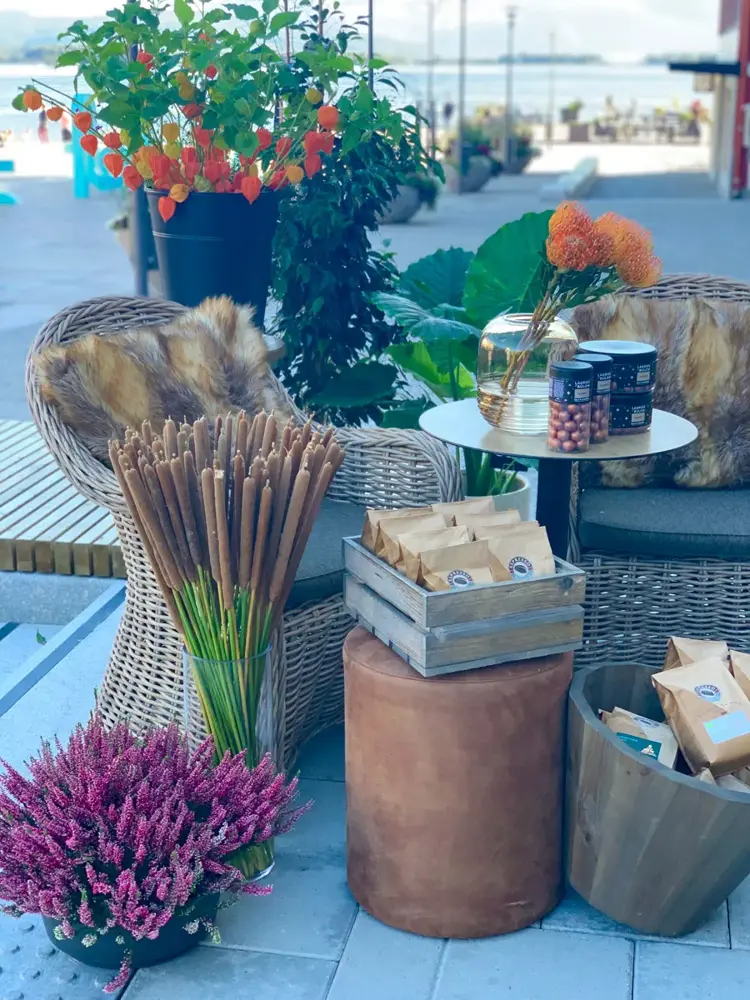 Ikke glem hjemmekosen heller, vi har et rikholdig utvalg av både te og kaffe. Brygg deg en nydelig kopp med varm drikke, ta med deg en god bok og sett deg under et lunt pledd når høststormene raser som verst – og bare kos deg!